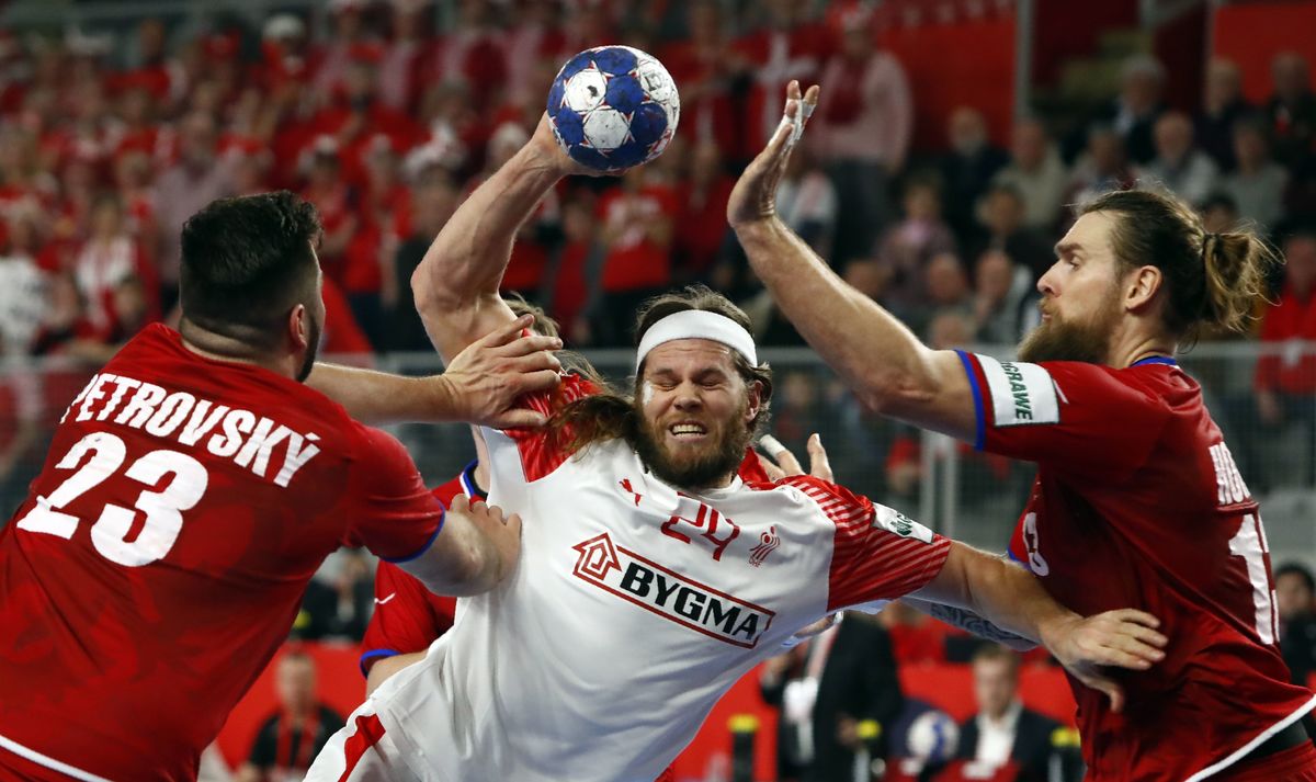 The much-improved Czechs, who suffered a 32-15 drubbing by Spain in their opener, prevailed after a tense finish to their preliminary round game with the Danes thanks to eight goals by Ondrej Zdrahala.