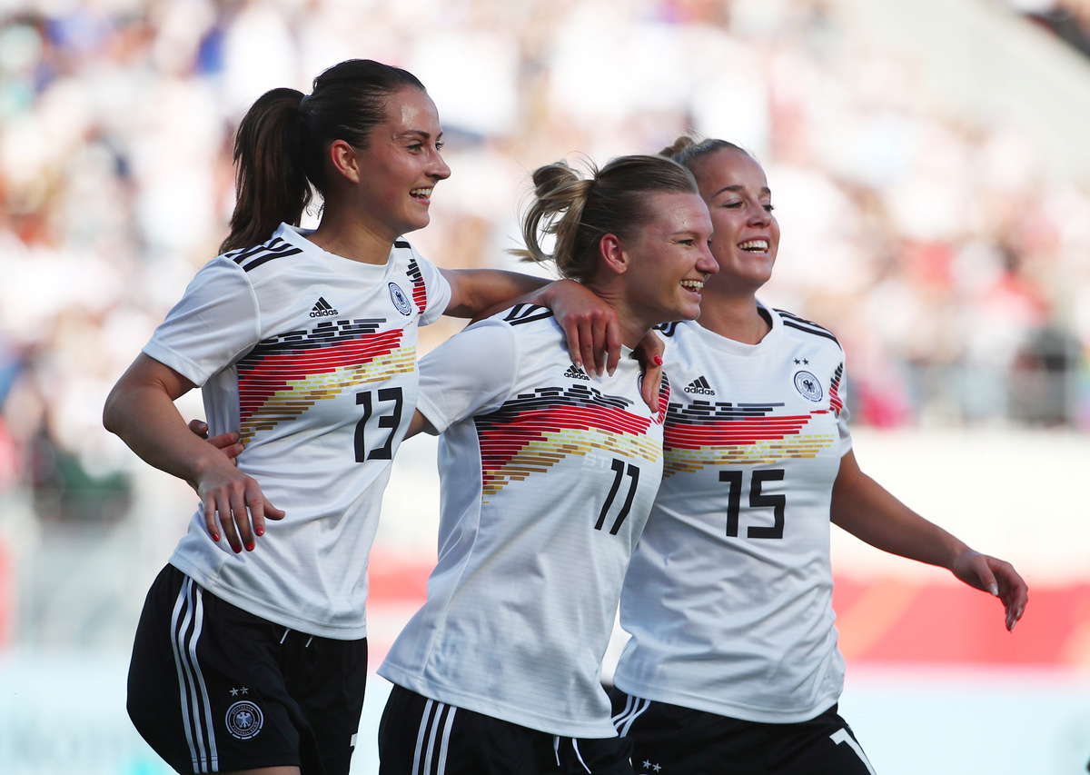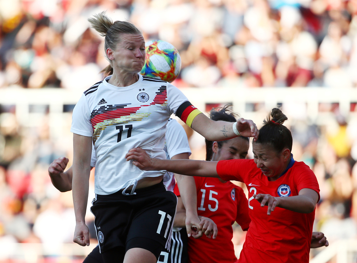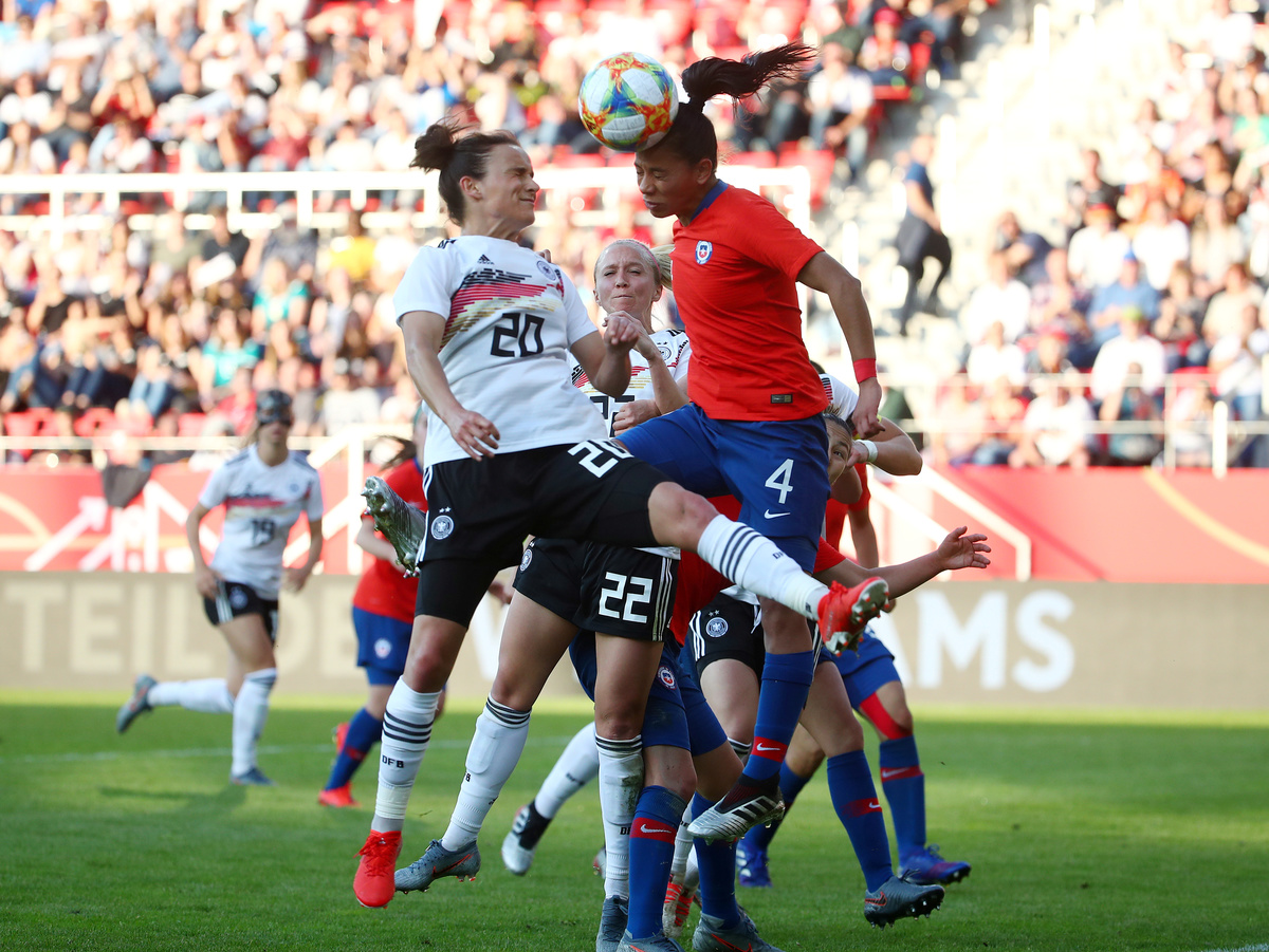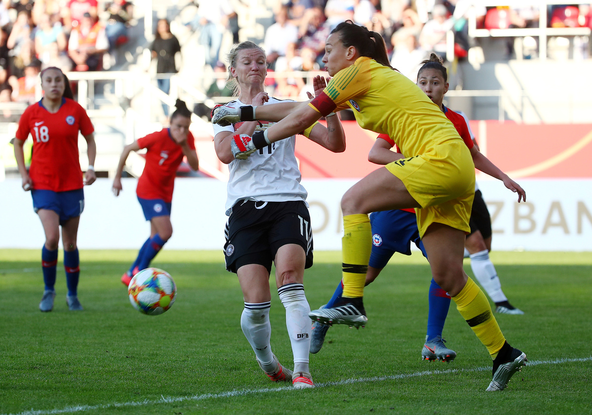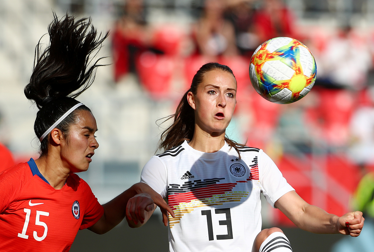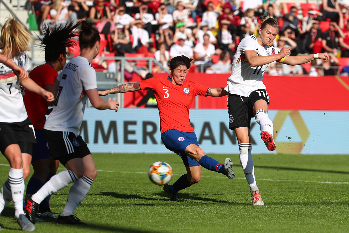 Soccer Football - Women's International Friendly - Germany v Chile - Continental Arena, Regensburg, Germany - May 30, 2019 Germany's Alexandra Popp in action with Chile's Karen Araya REUTERS/Michael DalderSoccer Football - Women's International Friendly - Germany v Chile - Continental Arena, Regensburg, Germany - May 30, 2019 Germany's Alexandra Popp celebrates scoring their first goal with team mates REUTERS/Michael DalderSoccer Football - Women's International Friendly - Germany v Chile - Continental Arena, Regensburg, Germany - May 30, 2019 Germany's Alexandra Popp in action REUTERS/Michael DalderSoccer Football - Women's International Friendly - Germany v Chile - Continental Arena, Regensburg, Germany - May 30, 2019 Germany's Klara Buehl REUTERS/Michael DalderSoccer Football - Women's International Friendly - Germany v Chile - Continental Arena, Regensburg, Germany - May 30, 2019 Germany's Alexandra Popp in action with Chile's Claudia Endler REUTERS/Michael Dalder
