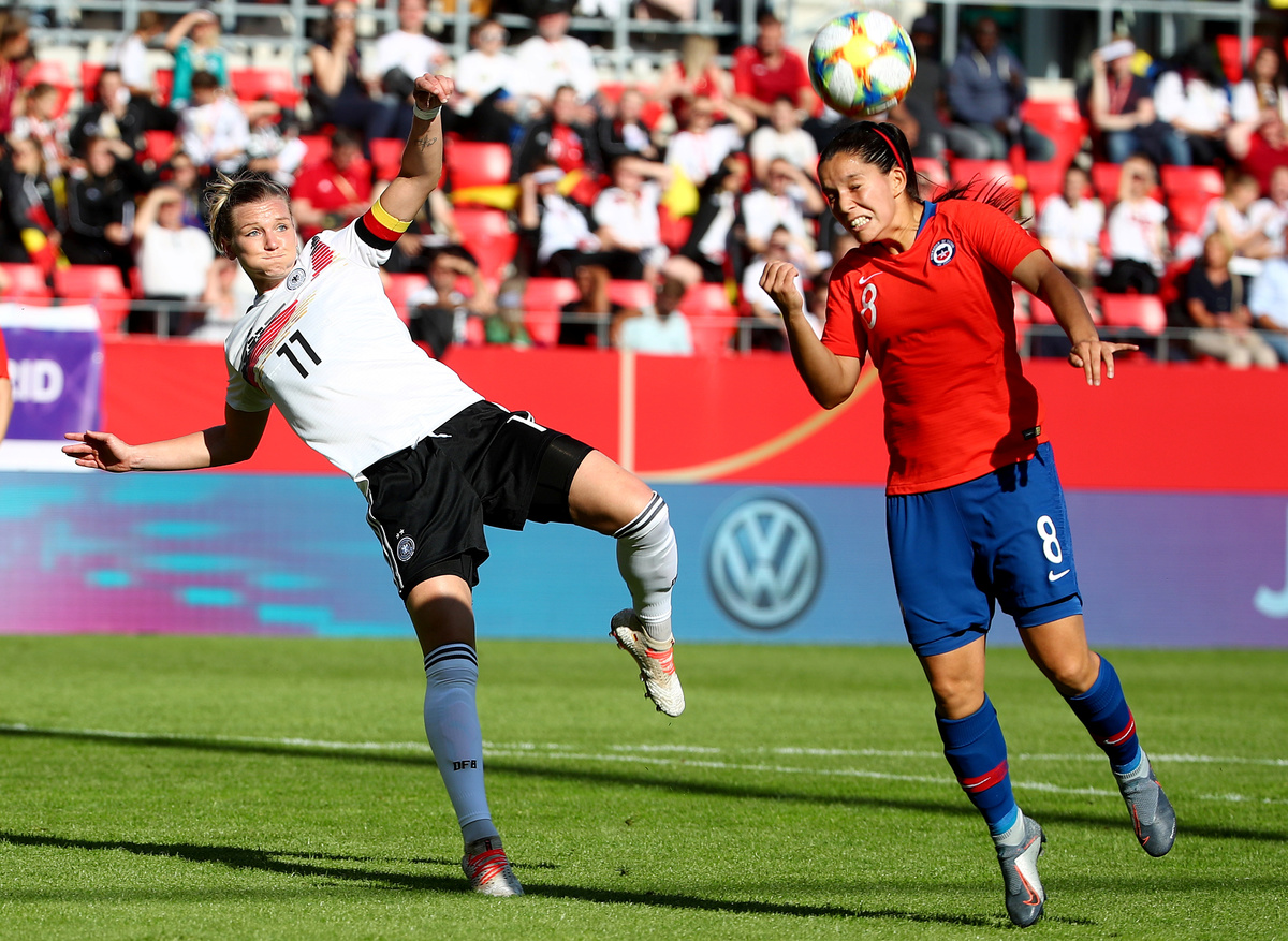 REGENSBURG, Germany (Reuters) - Germany scored twice in a strong first half to beat Chile 2-0 in their last women's World Cup warmup match on Thursday, stretching their unbeaten run to 12 games ahead of the start of the tournament next week.