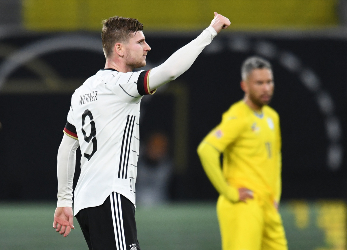 Germany striker Timo Werner scored in each half to help steer his side from behind to a 3-1 home win over Ukraine in the Nations League on Saturday as they topped the group with one round of games left to play.