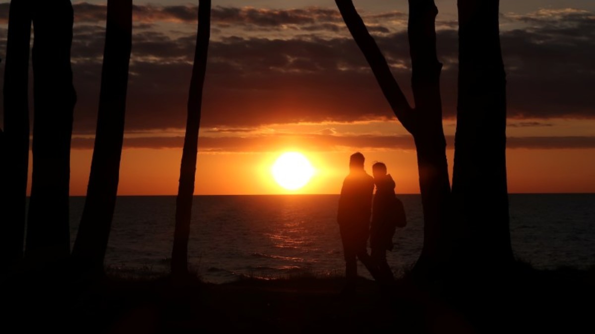 People watch the sunset at the Baltic Sea, amid the coronavirus disease (COVID-19) outbreak in Heiligendamm, Germany, May 30, 2020. REUTERS/Fabrizio Bensch