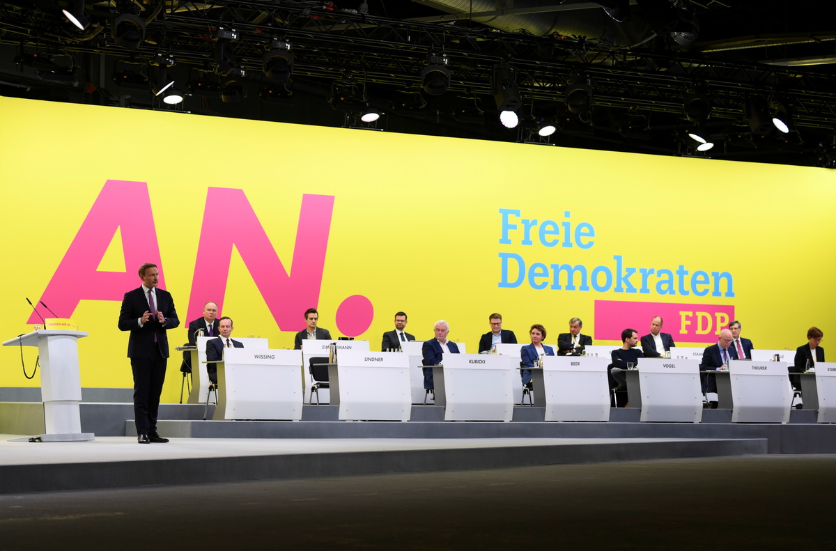 Germany's Free Democratic Party (FDP) leader Christian Lindner attends an extraordinary party convention to vote on the coalition agreement, in Berlin, Germany December 5, 2021. REUTERS/Annegret HilseBettina Stark-Watzinger of Germany's Free Democratic Party (FDP) attends an extraordinary party convention to vote on the coalition agreement, in Berlin, Germany December 5, 2021. REUTERS/Annegret HilseMarco Buschmann of Germany's Free Democratic Party (FDP) attends an extraordinary party convention to vote on the coalition agreement, in Berlin, Germany December 5, 2021. REUTERS/Annegret Hilse