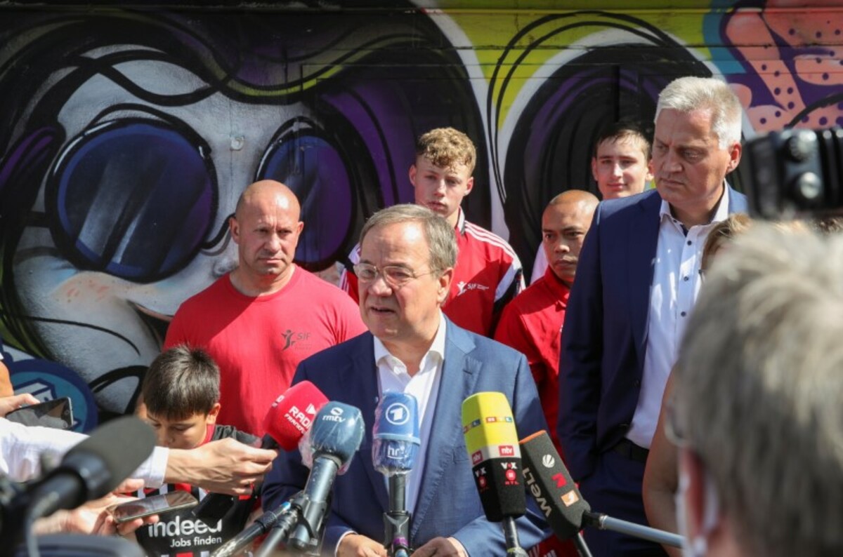 Laschet has suffered a slump in support after he was seen laughing on a visit to a flood-stricken town.