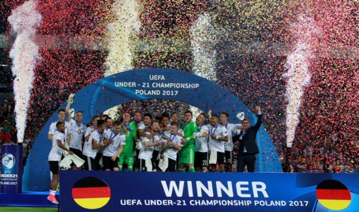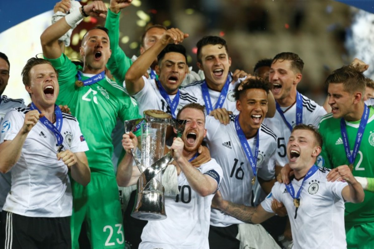 Soccer Football - Germany v Spain - UEFA Euro U21 Championships Final - Cracovia Stadium, Krakow, Poland - 30 June 2017. Germany's players celebrate after winning the cup. REUTERS/Kacper Pempel