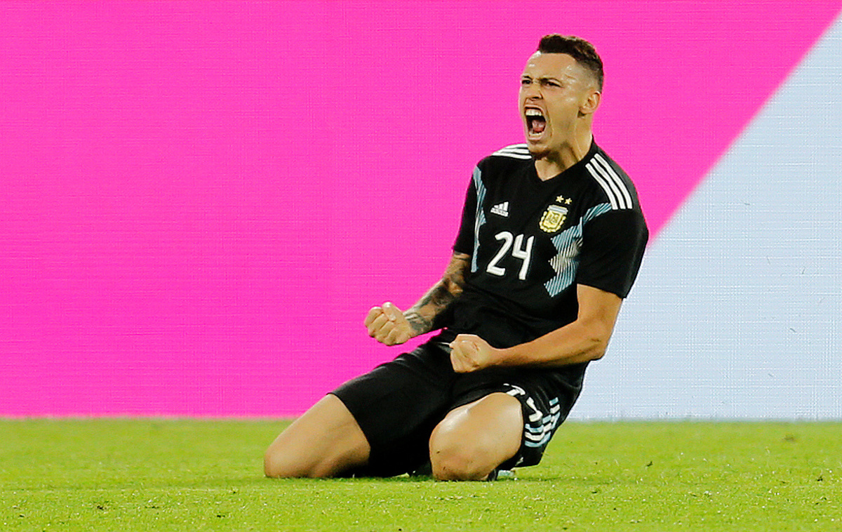 Soccer Football - International Friendly - Germany v Argentina - Signal Iduna Park, Dortmund, Germany - October 9, 2019 Argentina's Lucas Ocampos celebrates scoring their second goal REUTERS/Leon Kuegeler DFB regulations prohibit any use of photographs as image sequences and/or quasi-video