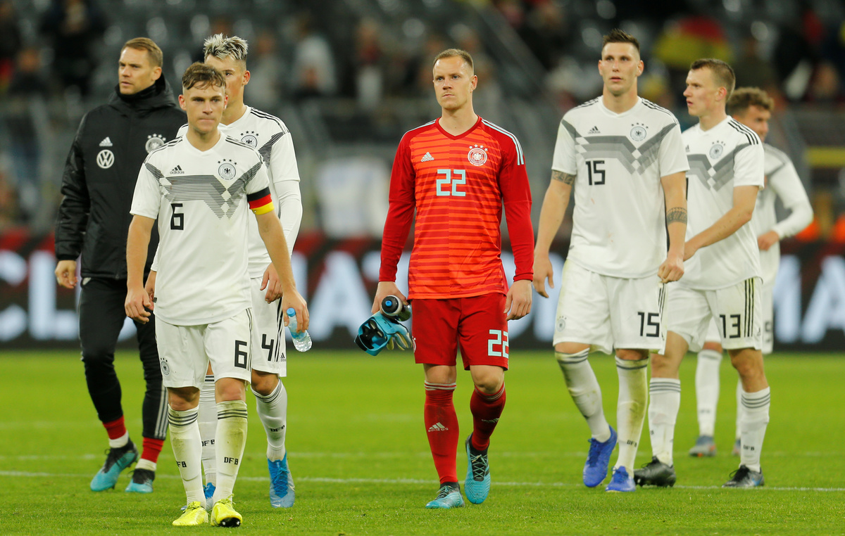 The Germans, missing a dozen players and without a single world champion in the starting line-up for the first time since the 2014 World Cup final, fielded a callow team including newcomers Robin Koch and Luca Waldschmidt.