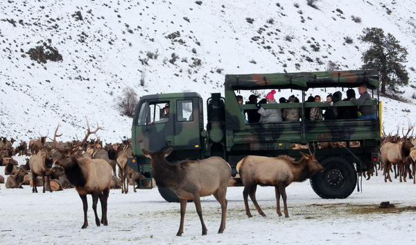 "It's about the only place in the country where you can drive up in your vehicle and see wild elk in front of you," said Ross Huffman, who has managed the wildlife area for nearly seven years. There, the public can board military-surplus trucks for free guided tours of the elk feeding area, hosted by WDFW.