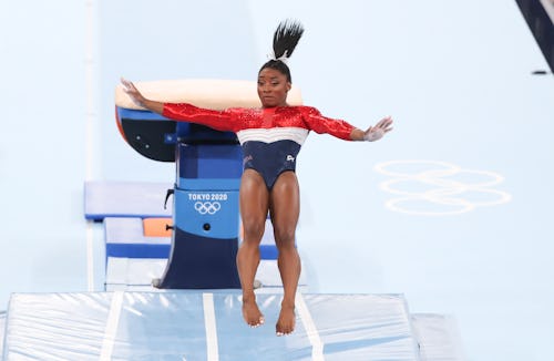 When you're flying through the air that fast, there's not much margin for error. You're mostly relying on muscle memory from years of training to make sure moves unfold like they're meant to. When Biles launched herself off the vaulting table and started spinning, her brain suddenly felt disconnected from her body. She wasn't able to use her limbs to control her tumbling and didn't know where she'd land. "I had no idea where I was in the air," she later said. "I could have hurt myself." Stills of Biles in midair from that terrifying vault show her looking discombobulated.