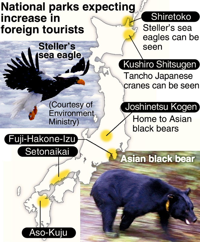 In the parks, tours focusing on wildlife observation have been limited in number so far. If such tours are realized for observing tancho Japanese cranes in Hokkaido's Kushiro Shitsugen National Park, or Asian black bears in Joshinetsu Kogen National Park, which straddles the borders of Gunma, Niigata and Nagano prefectures, the number of visitors to the parks can be expected to rise.