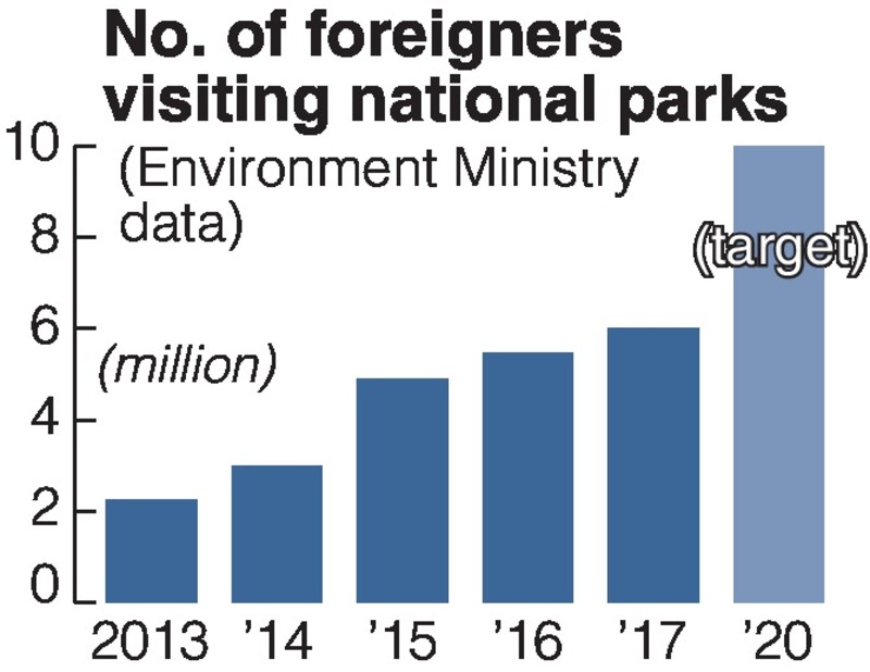 The number of foreign visitors to the parks has been increasing year by year. The ministry aims at doubling its figures from around 4.9 million in 2015 to 10 million by 2020.