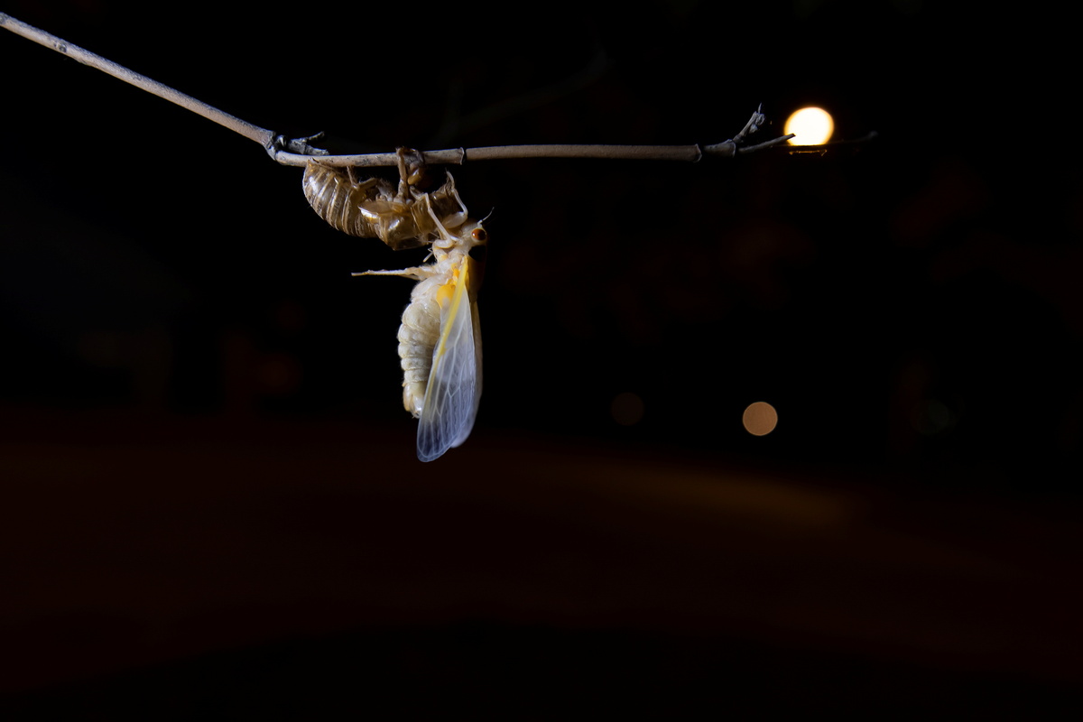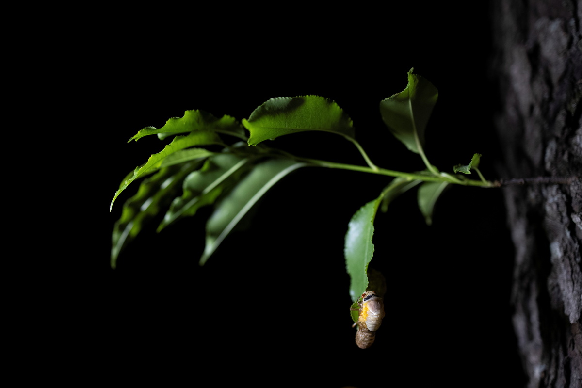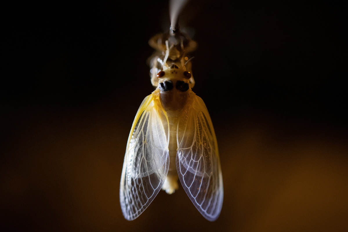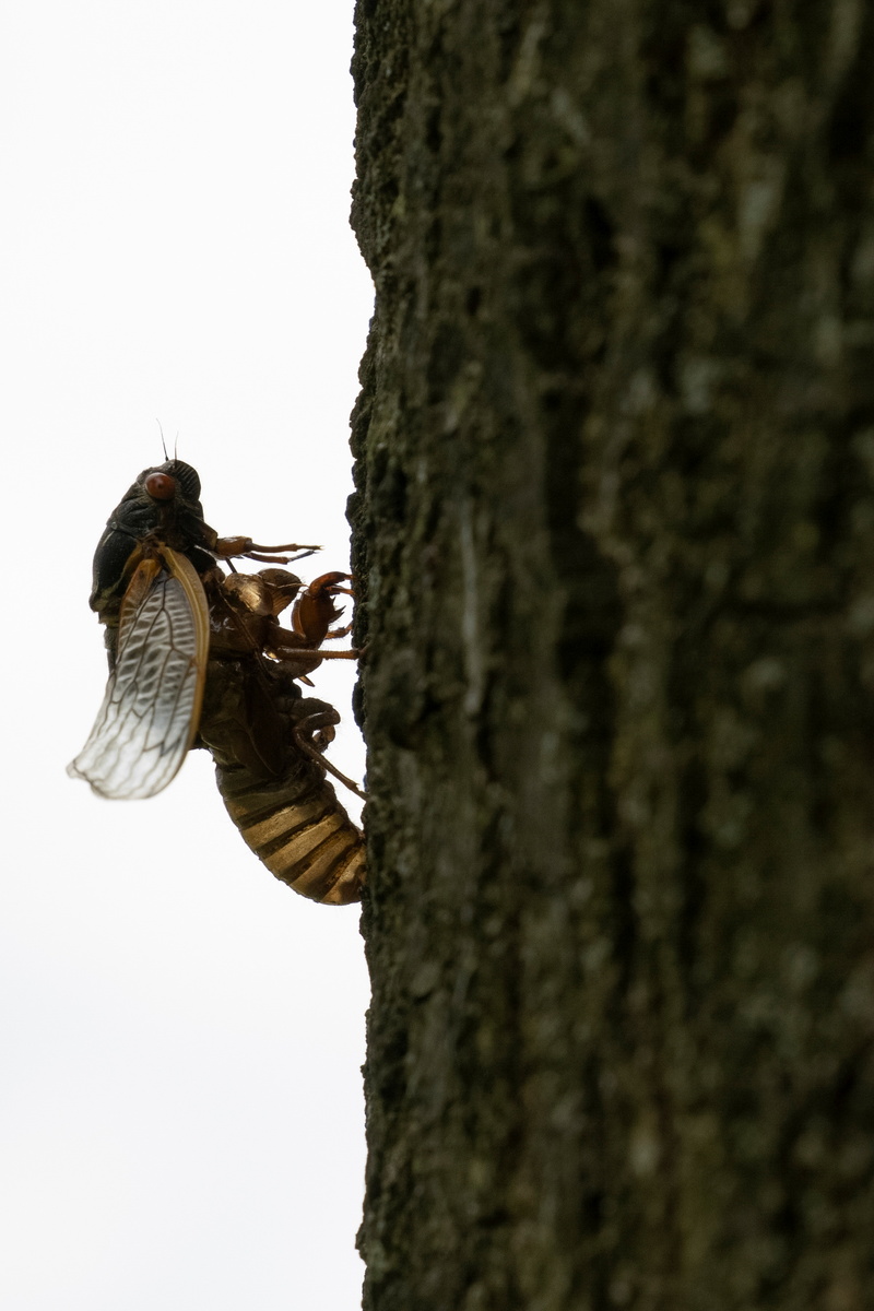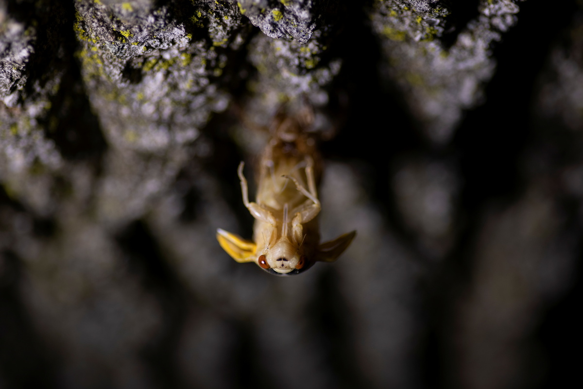 After cicadas pair and mate, the female carves grooves into a tree, where she lays hundreds of rice-shaped eggs.
