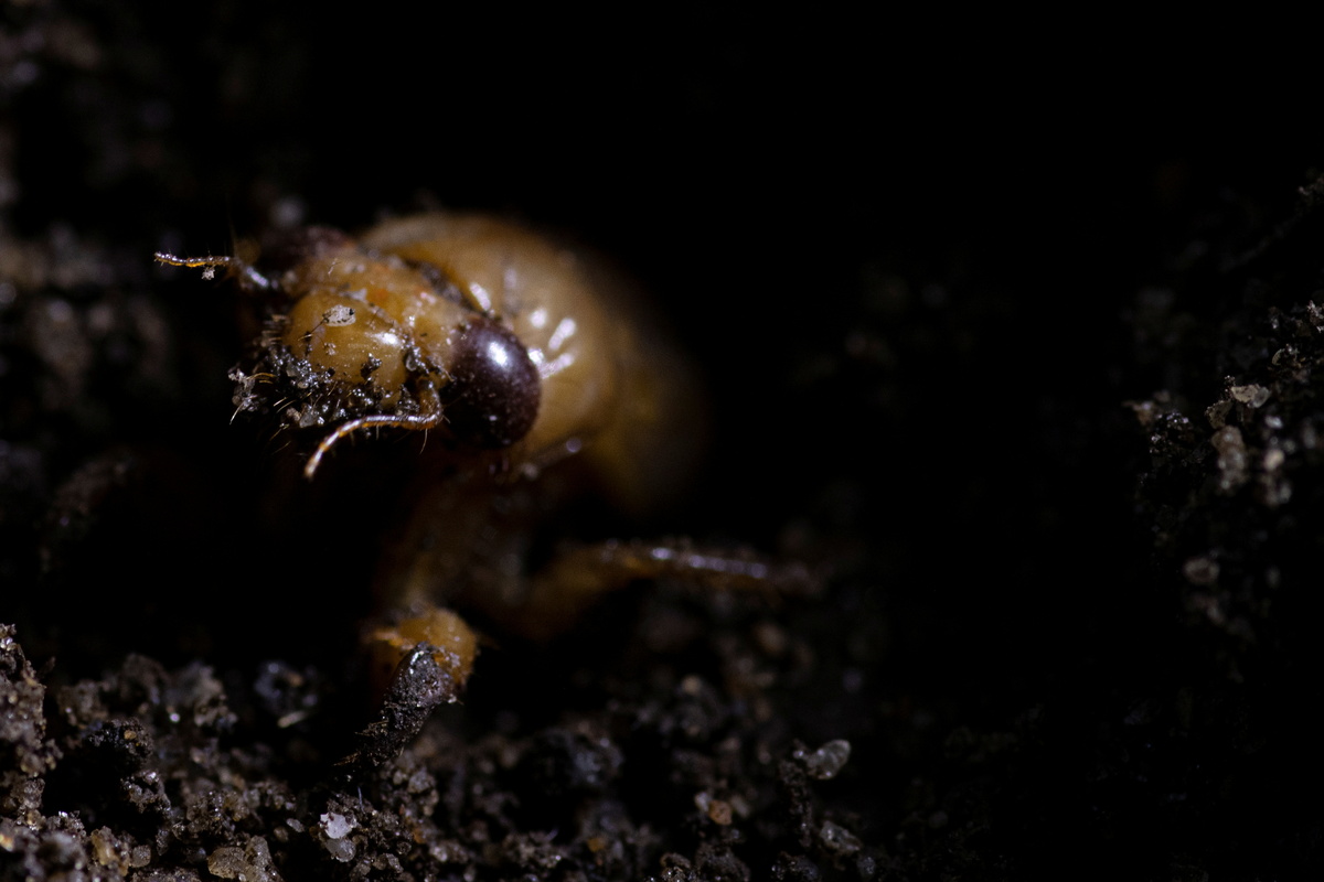 Soon after the eggs hatch, the larvae fall to the ground and burrow into the earth. They dig out solitary chambers and begin growing as they feed on tree sap until it is time to re-emerge and repeat the cycle.
