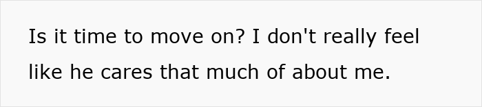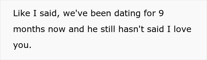 While she was struggling to get in and out of bed, he didn’t call or text for days, And when he finally did reach out, his excuse for his silence was that he “didn’t want to bother” her while she was resting. The OP noted that a few months earlier, she had told him she loved him, but he responded saying that it was too soon. This left her feeling upset, because they’d been friends for over a year before dating.