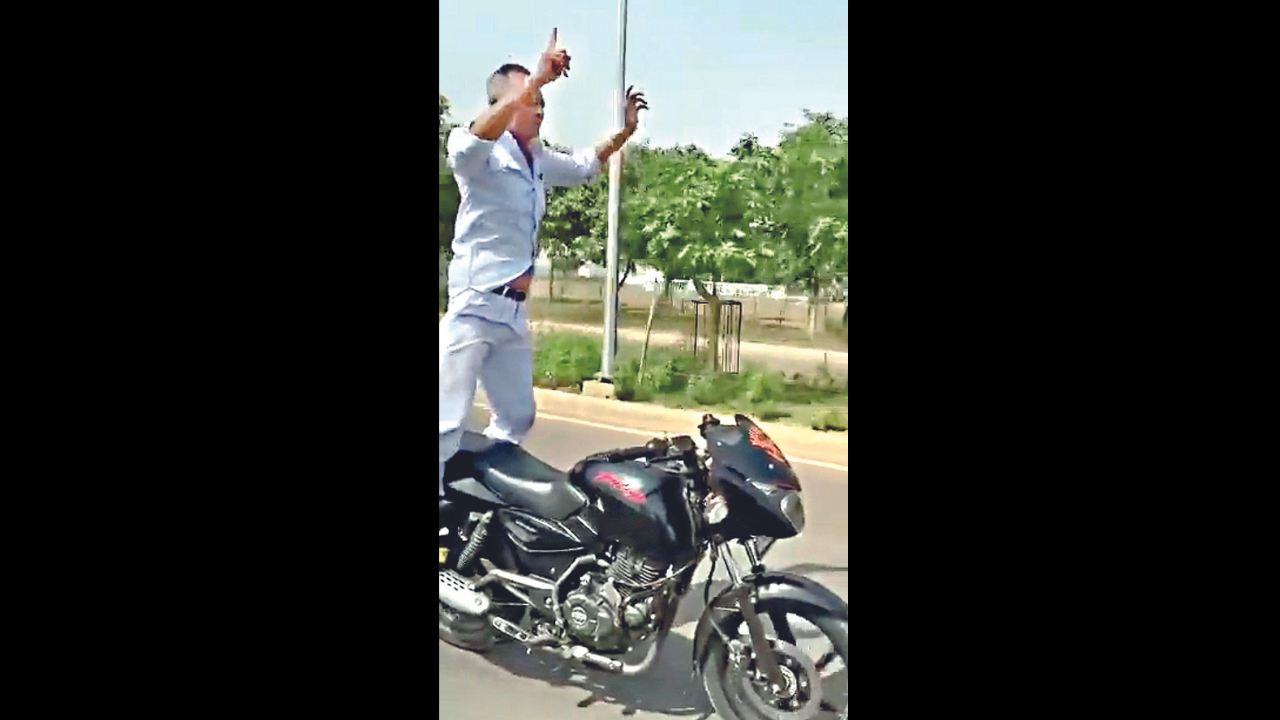 Last year, two women in their early 20s were spotted performing stunts on their bike. One of them sat on the other’s shoulder while riding. The SP spoke about a trend of youngsters violating traffic rules in the “craze to upload videos” on social media. “This has emerged as a serious problem as it endangers lives of people on the road. We have plans to crackdown on such violators,” he added.