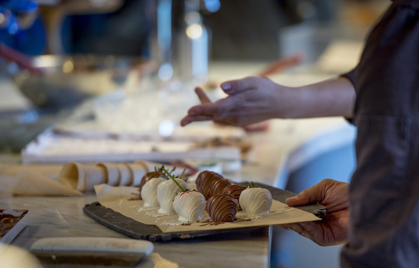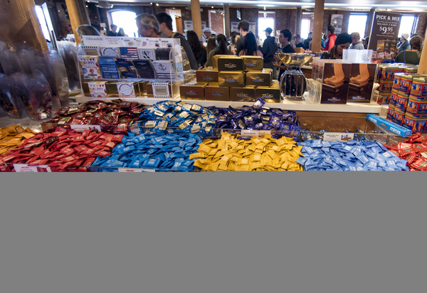 But first they join the mobs in the three Ghirardelli chocolate shops, shuffling in line for bags of sea salt-caramel squares and "world famous" ice cream sundaes.