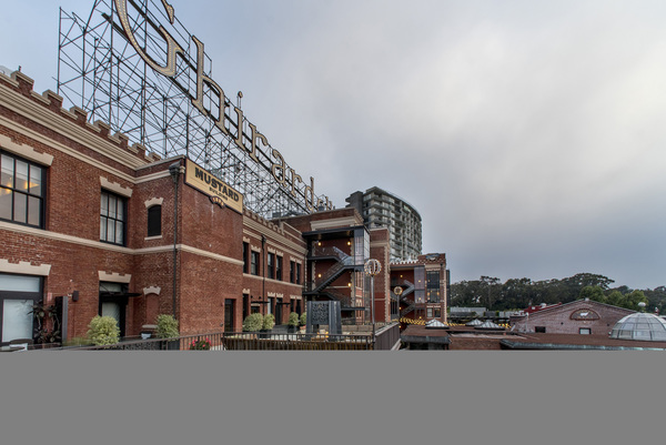 _ A pop-up beer garden from the highly regarded Petaluma-based Lagunitas Brewery offered a brief respite for the walk-weary at picnic tables under a huge awning. Bartenders filled glasses from four taps while a three-piece jazz band played on a small stage. The brew station will pour from noon to 7 p.m., Thursdays through Sundays through Labor Day. Jamestown is undecided about what to do with the space when the beer garden departs in September, said spokesman Sandlin.