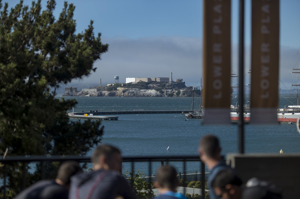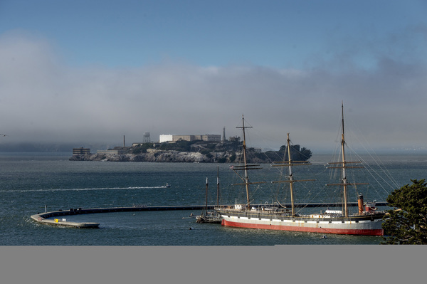 A relentless icy wind swept in from San Francisco Bay, blowing away the fog to reveal the 19th century three-masted schooner C.A. Thayer anchored offshore. Farther out, Alcatraz Island was circled by seagulls and besieged by an armada of tour boats plowing through the chop.