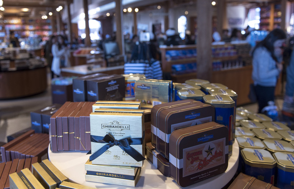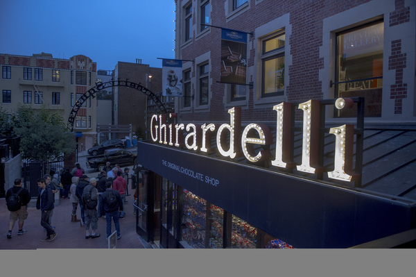 They take selfies in front of the plaza centerpiece, Andrea's Fountain, with its bronze sculptures of mermaids forged in 1968. They stare in dazed delight 100 feet above the plaza at the 15-foot-tall letters in the light bulb sign that has spelled out "Ghirardelli" since 1923, then move on in search of souvenir sourdough bread.
