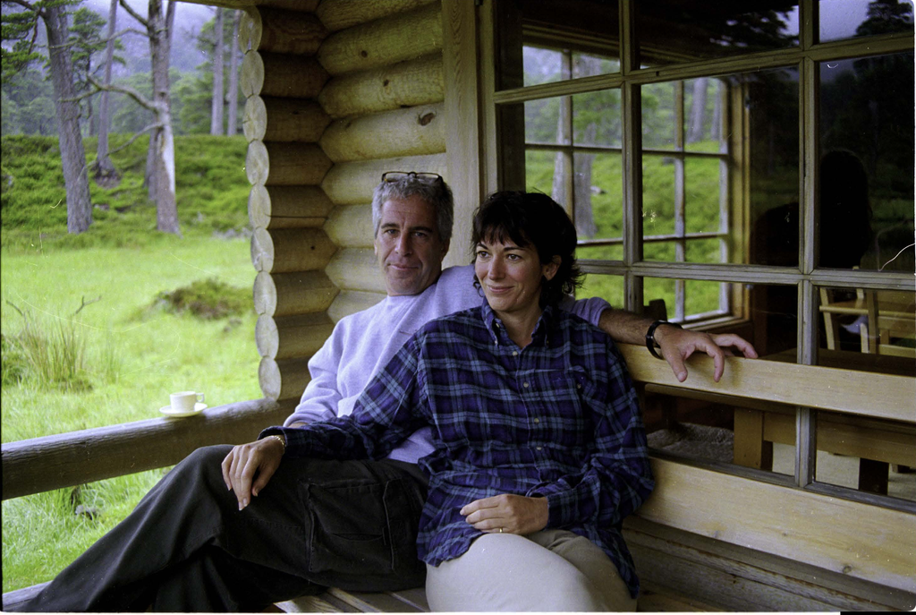 The image, believed to have been taken in 1999, shows Epstein and Ms Maxwell lounging on a bench on the deck of a log cabin on the grounds of the sprawling royal home in the Scottish Highlands.