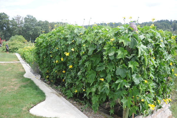 Instead of growing the gourds, tomatoes and squash on a wooden shed as he had done last year, he spent $1,000 on steel fencing and constructed a 40-foot-long structure along the back of his yard at the edge of a steep hillside.