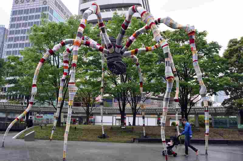 The 10-meter high spider, dubbed "Maman," is the work of French-American sculptor Louise Bourgeois. American textile artist Magda Sayeg covered Maman's eight legs with almost 600 pieces of knitting, taking 11 days to complete the project.