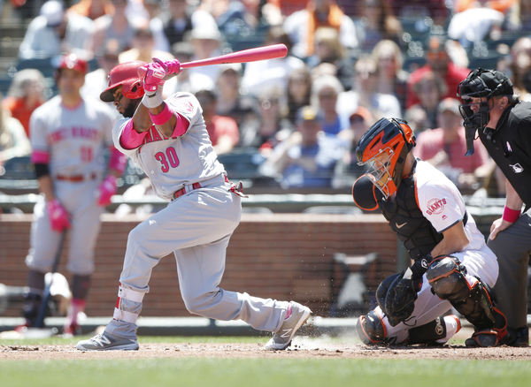 With a run in, the Reds threatened to get more when Adam Duvall singled, but Blach got out of it when he got Eugenio Suarez to hit a double-play ground ball to Brandon Crawford at shortstop.