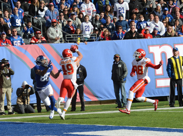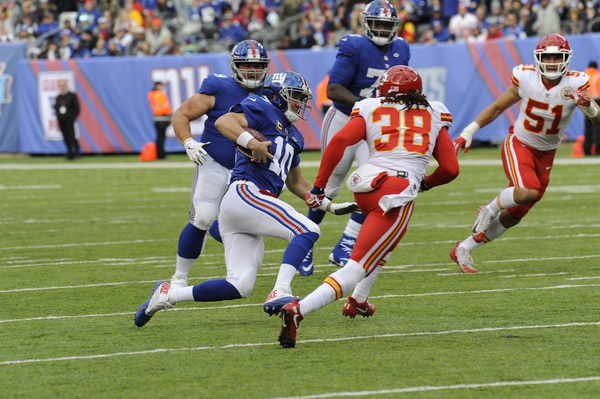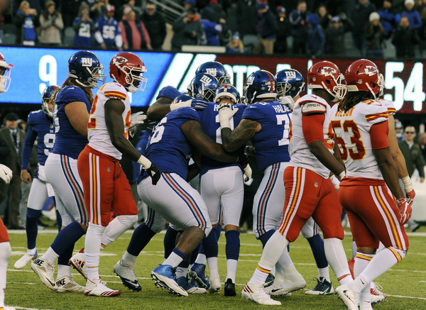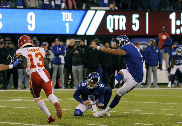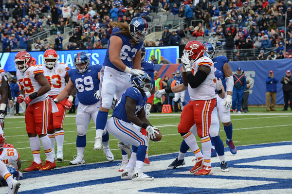 It gave the Giants prime field position at the Kansas City 26 and six plays later, Orleans Darkwa punched it in for a one-yard touchdown run with defensive tackle Robert Thomas lined up as a fullback to help pave the way.