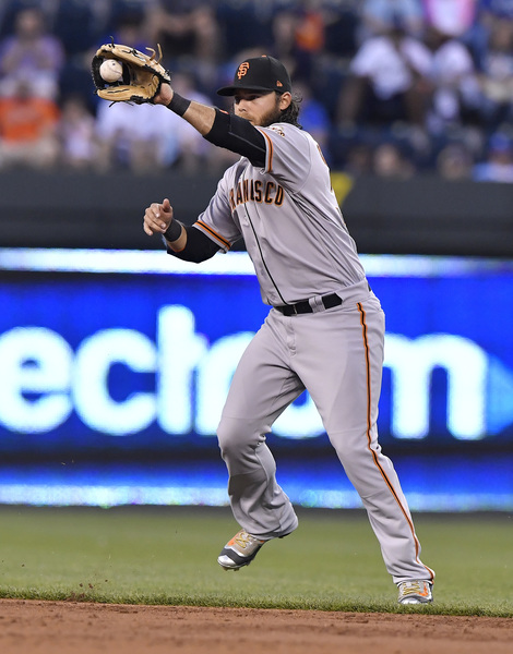 The game got interesting the moment Cain departed after throwing 86 pitches. Ty Blach ran into trouble when he issued a leadoff walk and hit a batter before Mike Moustakas lined out. Then George Kontos appeared to have Cain dominated before the Royals' speedy No.3 hitter reached on an infield single that loaded the bases. Left-hander Steven Okert was next, and he got Eric Hosmer to hit a sharp grounder to third base. Brandon Belt won the footrace to the bag.