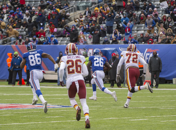 After an Aldrick Rosas field goal in the second quarter, the Giants special teams allowed Washington to pull within five when Brad Wing shanked a punt to Jamison Crowder with 17 seconds remaining.