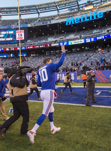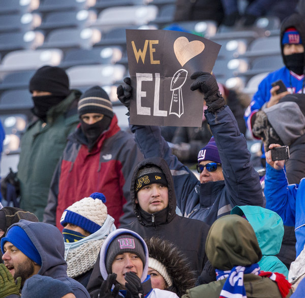 The sparse crowd at MetLife Stadium also rang out an "E-LI MANN-ING" chant in the final minutes of the game.