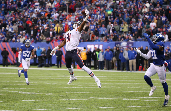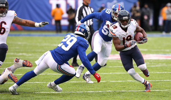 The Bears kicked a field goal to go ahead 9-6 and Jeremy Langford scored on a 1-yard touchdown run midway through the second quarter (the PAT was good!) to go ahead 16-6. Gould connected on a 46-yard field goal with 3:33 left in the half to cut it to 16-9. The Giants converted a fourth down on that drive, too.