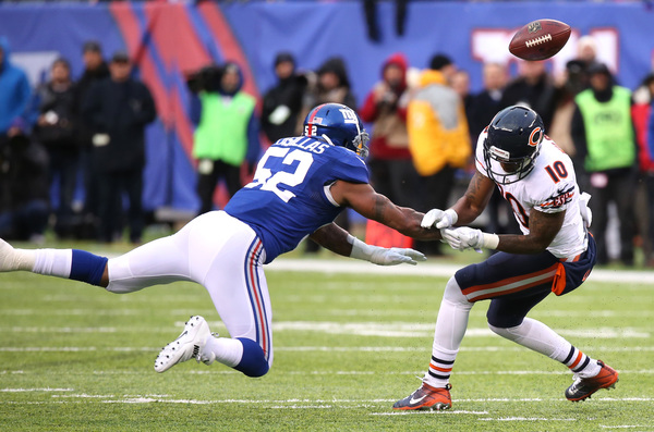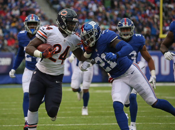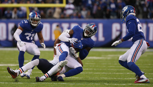 The six-point lead felt perilous, especially after Harris muffed a punt that Eli Apple recovered for the Giants or when the Bears pinned the Giants at their own 6 in the fourth quarter. But the Giants' defense was able to keep Chicago from scoring, allowing only 106 yards in the second half. The closest the Bears came to scoring was a 51-yard field-goal attempt by Connor Barth that knocked off the right upright. Safety Landon Collins sealed the win with an interception with 1:11 left in the game. It was Collins' fifth interception of the season.