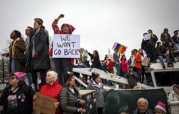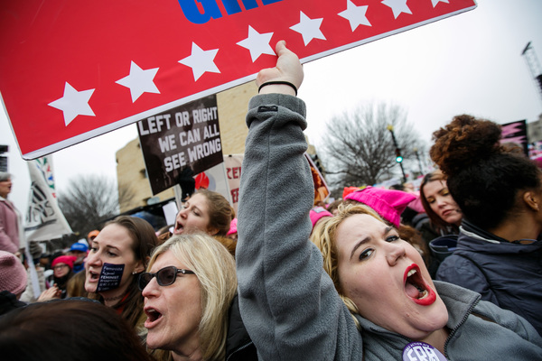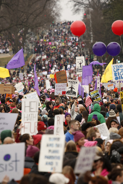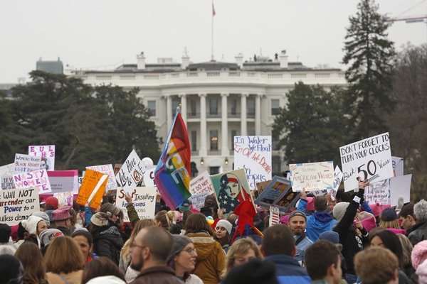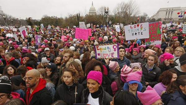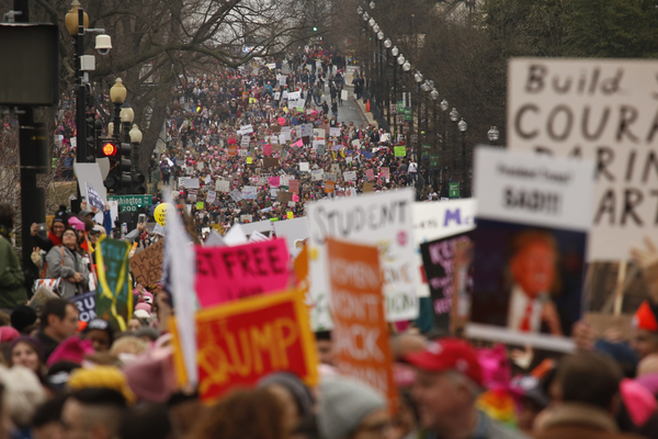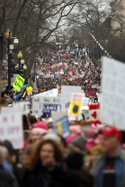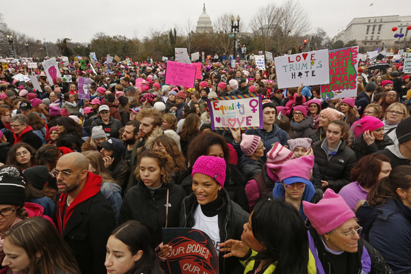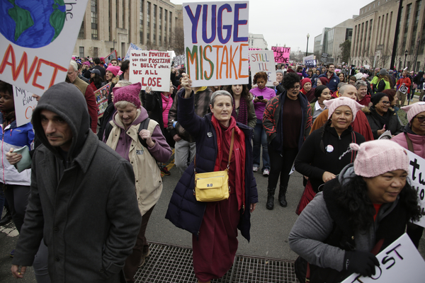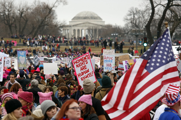 WASHINGTON _ Hundreds of thousands of women and supporters marched in the nation's capital Saturday after a huge and raucous rally meant to send a message of defiance and hope to President Donald Trump on the day after his inauguration.