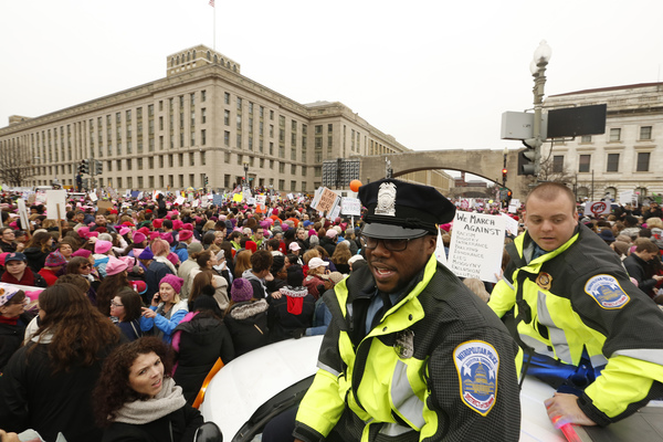 The turnout for the march was a show of force that gave signs of exceeding the attendance of the presidential inauguration a day earlier. Washington Metro trains that had been lightly used Friday were jammed so full of protesters with signs and pink hats on Saturday that crowds on platforms had to wait for more trains. Outside the Capitol, a constant stream of thousands of cheering women emerging from Metro stops headed for the march's starting location.