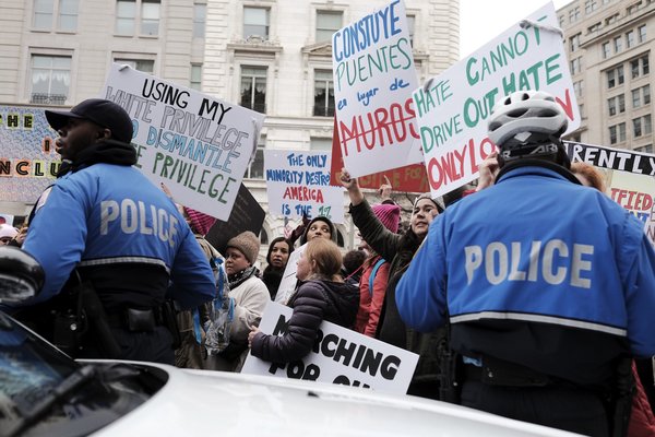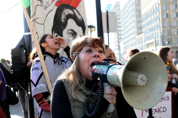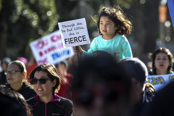 "It's been a heart-rending time to be both a woman and an immigrant. Our dignity, our character, our rights have been under attack," she told the crowd. "But the president is not America. We are America."