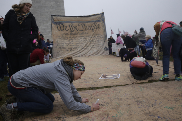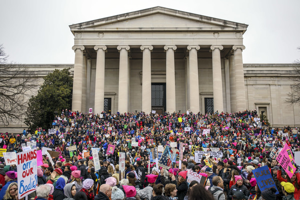 Gloria Steinem, a longtime leader of the feminist movement, scorned the notion of male patriarchy, declaring, "No more asking Daddy!" Actress Scarlett Johansson mounted a passionate defense of Planned Parenthood, threatened with defunding under the new administration.