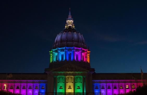 San Francisco, the home of the flag, honours Gay Pride by lighting up its city hall.
