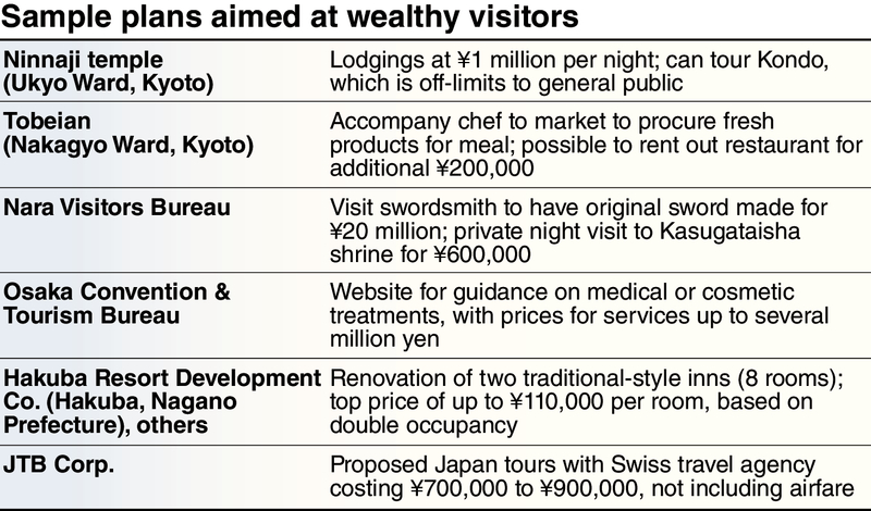 As more and more foreign visitors flock to Japan, there has been a growing variety of plans targeting the more affluent tourists of the world.