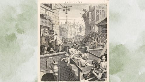 In 1751, the English painter William Hogarth created a nightmarish depiction of the London slum of St Giles. The familiar spire of the parish church towered over a scene of human ruin. This is Gin Lane, an imagined thoroughfare where the consumption of gin has deprived the inhabitants of sense, finances – and in some instances life.