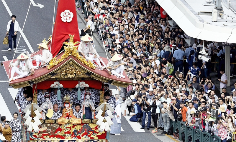 According to the Kyoto prefectural police, the turnout along the streets for the festival was about 34,000 people as of 9:30 a.m. The second Yamahoko Junko procession, called the Ato Matsuri, will be held on July 24 with 11 Yamahoko floats taking part.