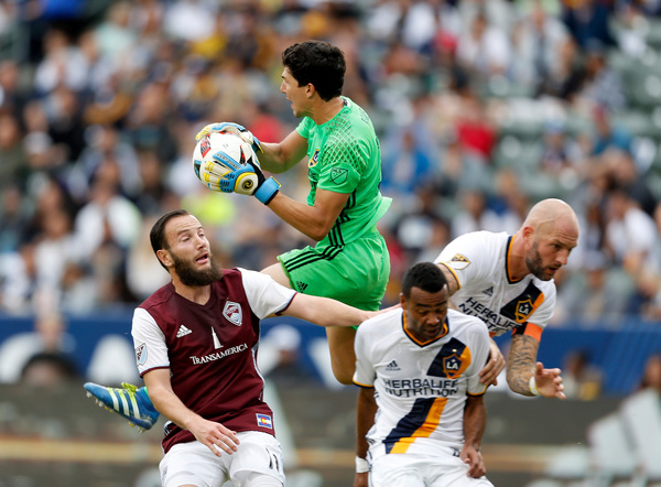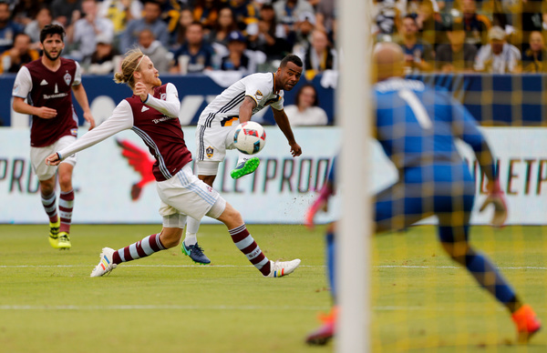 Dos Santos ducked his head at the ball, sending a soft one-hop shot toward the goal. But when Colorado defender Axel Sjoberg stepped in front to try to clear it, he mistakenly headed it away from keeper Tim Howard and into the side netting at the far post.