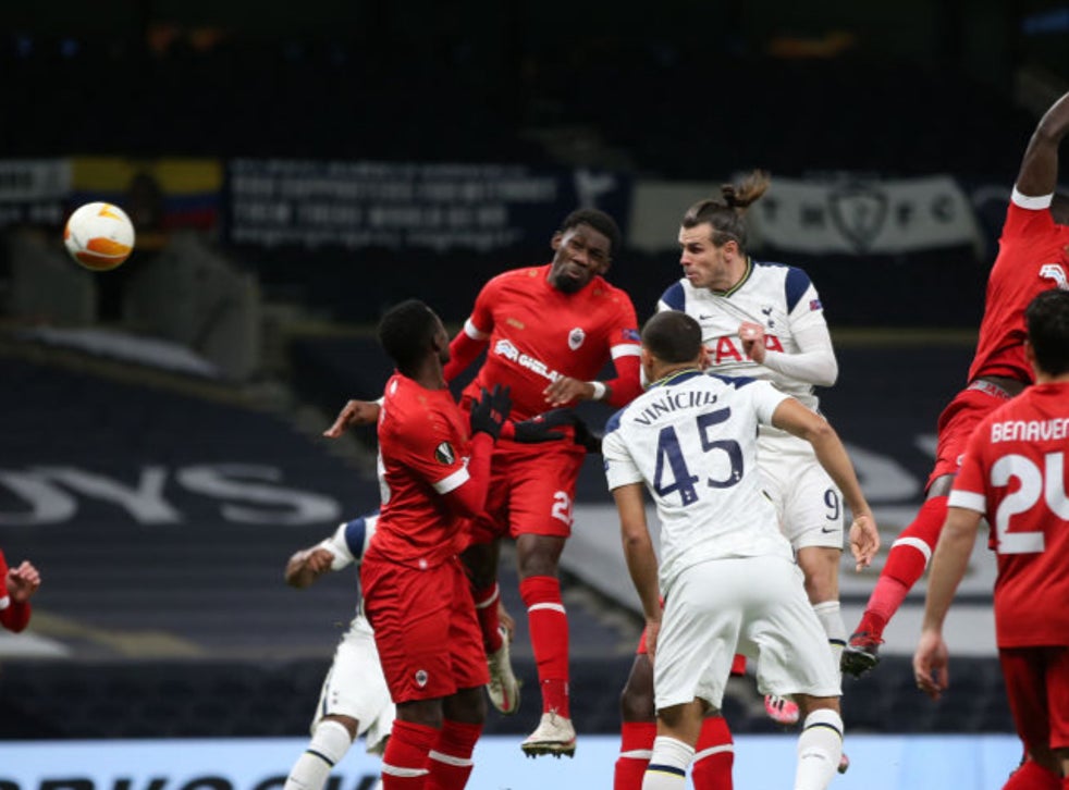 First Japhet Tanganga headed a free-kick just wide and then, when the referee bizarrely gave a corner, Bale glanced just off target.