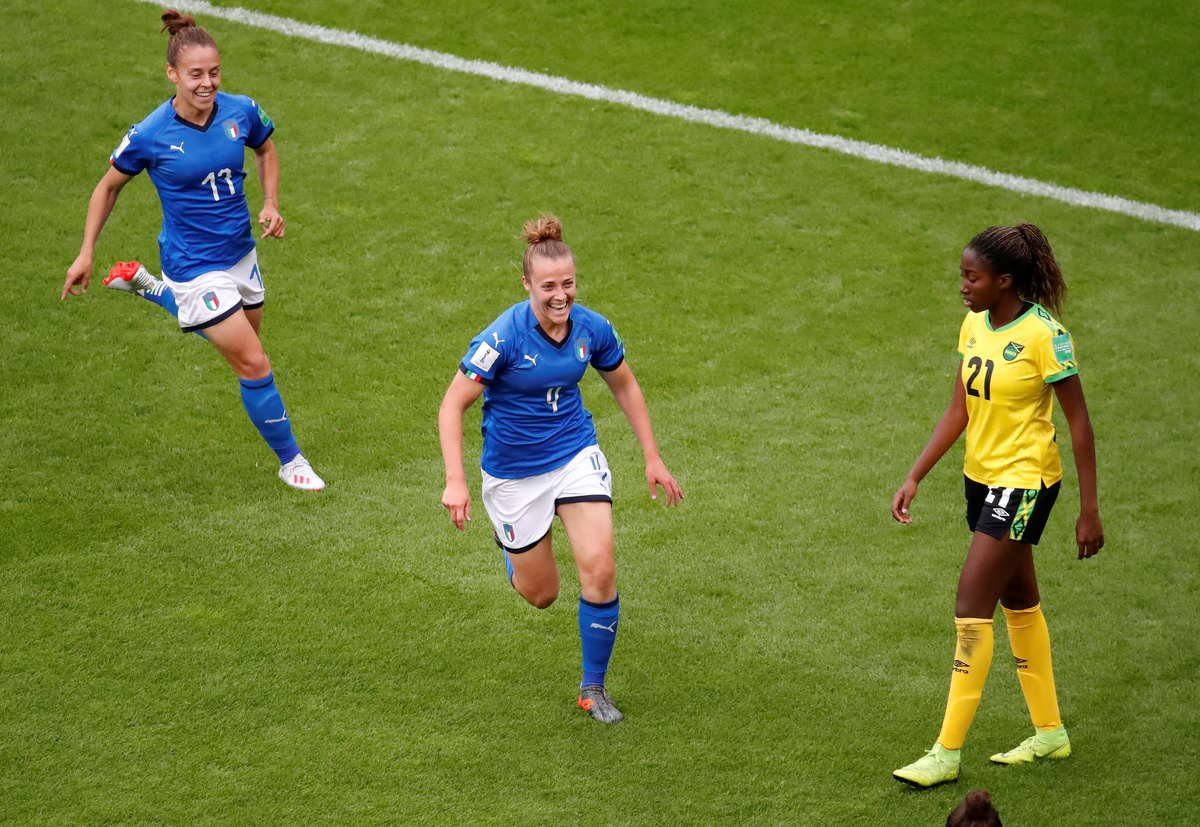 REIMS, France (Reuters) - Italy's Cristiana Girelli bagged a hat-trick and substitute Aurora Galli struck twice as they thrashed Jamaica 5-0 to qualify for the last 16 of the women’s World Cup on Friday.