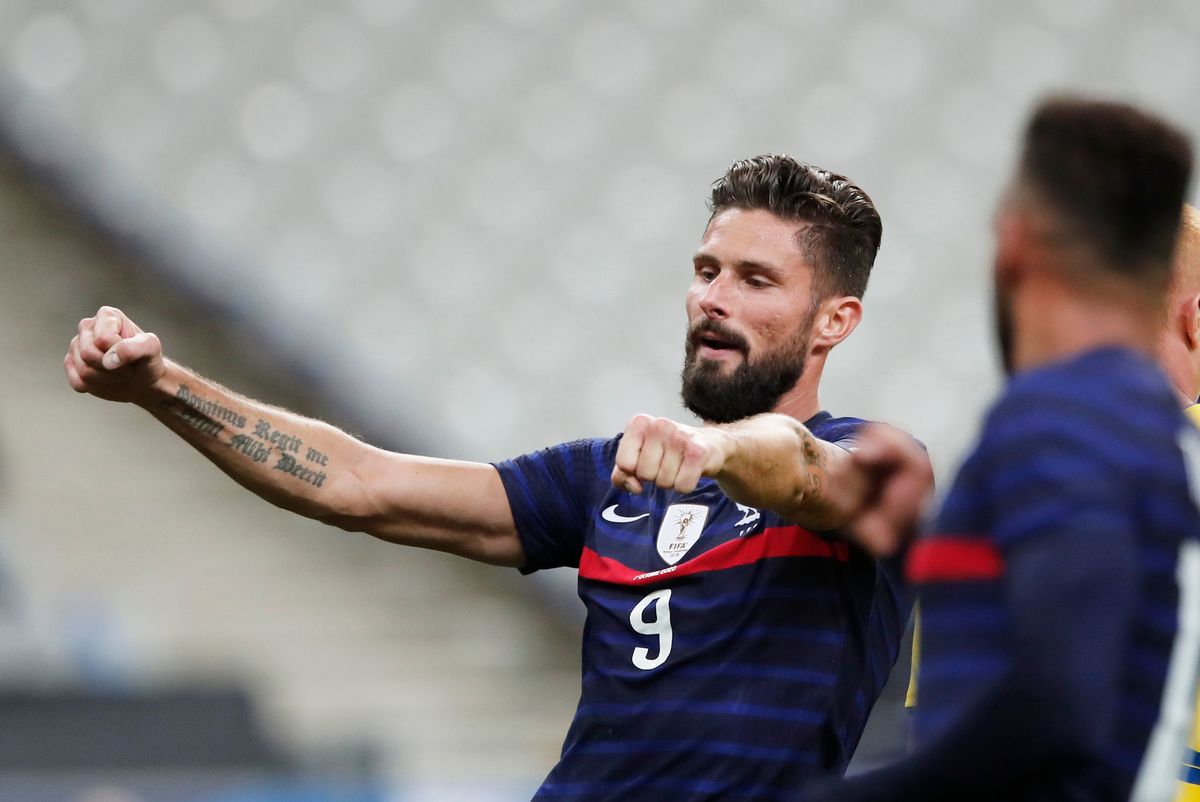 Giroud, who celebrated winning his 100th cap, found the back of the net twice in the second half to move within nine goals of Thierry Henry's French scoring record.