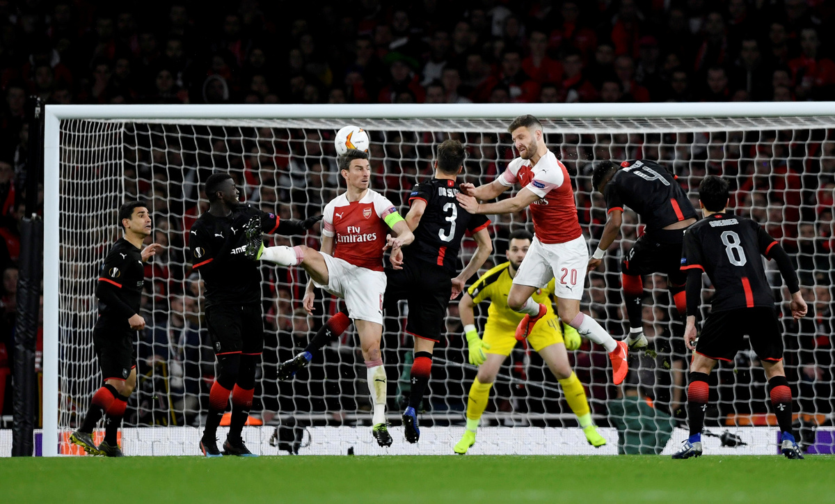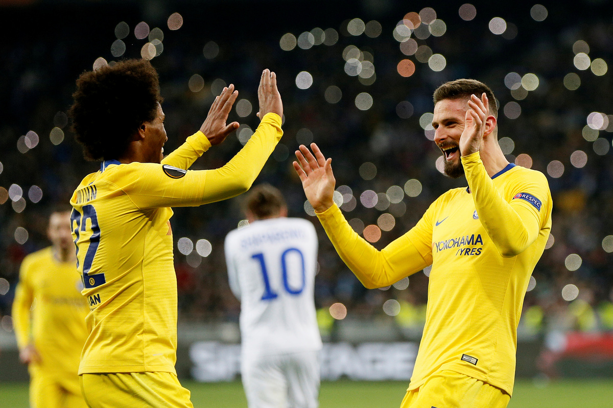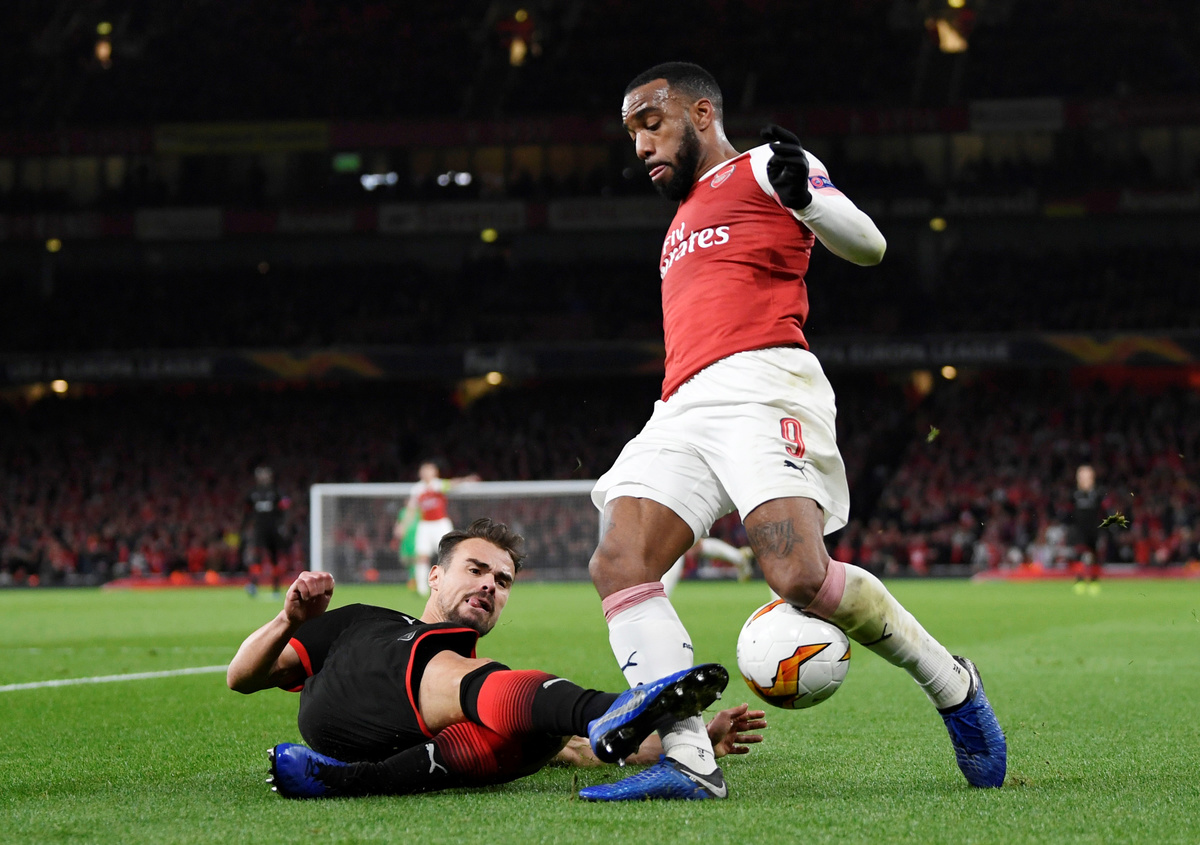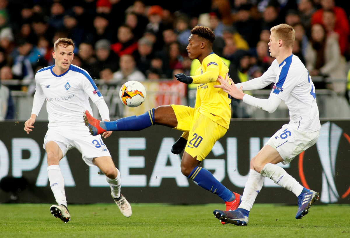 Soccer Football - Europa League - Round of 16 Second Leg - Arsenal v Stade Rennes - Emirates Stadium, London, Britain - March 14, 2019 Stade Rennes' Damien Da Silva in action with Arsenal's Alexandre Lacazette Action Images via Reuters/Tony O'BrienSoccer Football - Europa League - Round of 16 Second Leg - Arsenal v Stade Rennes - Emirates Stadium, London, Britain - March 14, 2019 Stade Rennes' Hamari Traore in action with Arsenal's Mesut Ozil Action Images via Reuters/Tony O'BrienSoccer Football - Europa League - Round of 16 Second Leg - Dynamo Kiev v Chelsea - NSC Olympiyskiy, Kiev, Ukraine - March 14, 2019 Chelsea's Olivier Giroud celebrates scoring their fourth goal to complete his hat-trick with Willian REUTERS/Valentyn OgirenkoSoccer Football - Europa League - Round of 16 Second Leg - Dynamo Kiev v Chelsea - NSC Olympiyskiy, Kiev, Ukraine - March 14, 2019 Chelsea's Callum Hudson-Odoi in action with Dynamo Kiev's Tomasz Kedziora REUTERS/Valentyn OgirenkoSoccer Football - Europa League - Round of 16 Second Leg - Dynamo Kiev v Chelsea - NSC Olympiyskiy, Kiev, Ukraine - March 14, 2019 Dynamo Kiev's Vitaliy Mykolenko in action with Chelsea's Cesar Azpilicueta REUTERS/Valentyn OgirenkoSoccer Football - Europa League - Round of 16 Second Leg - Dynamo Kiev v Chelsea - NSC Olympiyskiy, Kiev, Ukraine - March 14, 2019 Chelsea's Jorginho in action with Dynamo Kiev's Volodymyr Shepeliev REUTERS/Valentyn OgirenkoSoccer Football - Europa League - Round of 16 Second Leg - Dynamo Kiev v Chelsea - NSC Olympiyskiy, Kiev, Ukraine - March 14, 2019 Chelsea's Callum Hudson-Odoi scores their fifth goal REUTERS/Valentyn OgirenkoSoccer Football - Europa League - Round of 16 Second Leg - Dynamo Kiev v Chelsea - NSC Olympiyskiy, Kiev, Ukraine - March 14, 2019 General view of Dynamo Kiev fans holding up their scarves during the match REUTERS/Valentyn OgirenkoSoccer Football - Europa League - Round of 16 Second Leg - Dynamo Kiev v Chelsea - NSC Olympiyskiy, Kiev, Ukraine - March 14, 2019 Dynamo Kiev's Tomasz Kedziora and Serhiy Sydorchuk in action with Chelsea's Ruben Loftus-Cheek REUTERS/Valentyn OgirenkoSoccer Football - Europa League - Round of 16 Second Leg - Dynamo Kiev v Chelsea - NSC Olympiyskiy, Kiev, Ukraine - March 14, 2019 Chelsea's Callum Hudson-Odoi in action with Dynamo Kiev's Mykyta Burda and Tomasz Kedziora REUTERS/Valentyn OgirenkoSoccer Football - Europa League - Round of 16 Second Leg - Dynamo Kiev v Chelsea - NSC Olympiyskiy, Kiev, Ukraine - March 14, 2019 Dynamo Kiev's Serhiy Sydorchuk shoots against the post as Chelsea's Kepa Arrizabalaga attempts to save REUTERS/Valentyn OgirenkoSoccer Football - Europa League - Round of 16 Second Leg - Dynamo Kiev v Chelsea - NSC Olympiyskiy, Kiev, Ukraine - March 14, 2019 Dynamo Kiev's Tomasz Kedziora in action with Chelsea's Marcos Alonso REUTERS/Valentyn OgirenkoSoccer Football - Europa League - Round of 16 Second Leg - Dynamo Kiev v Chelsea - NSC Olympiyskiy, Kiev, Ukraine - March 14, 2019 Chelsea's Willian in action with Dynamo Kiev's Mykola Shaparenko REUTERS/Valentyn OgirenkoSoccer Football - Europa League - Round of 16 Second Leg - Dynamo Kiev v Chelsea - NSC Olympiyskiy, Kiev, Ukraine - March 14, 2019 Chelsea's N'Golo Kante in action with Dynamo Kiev's Serhiy Sydorchuk and Vitaliy Mykolenko REUTERS/Valentyn Ogirenko