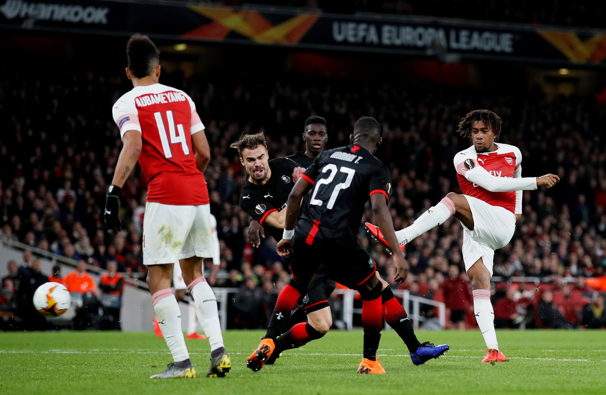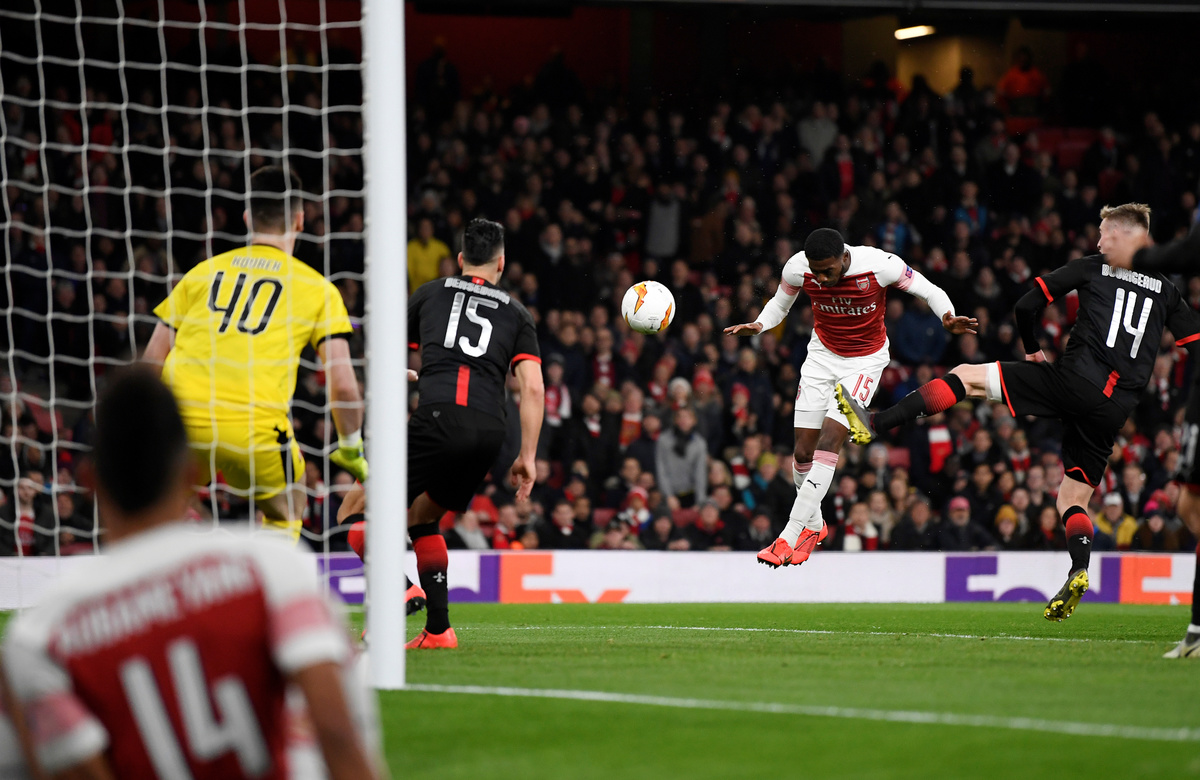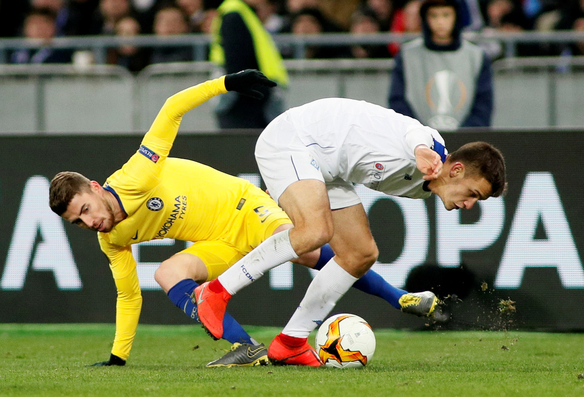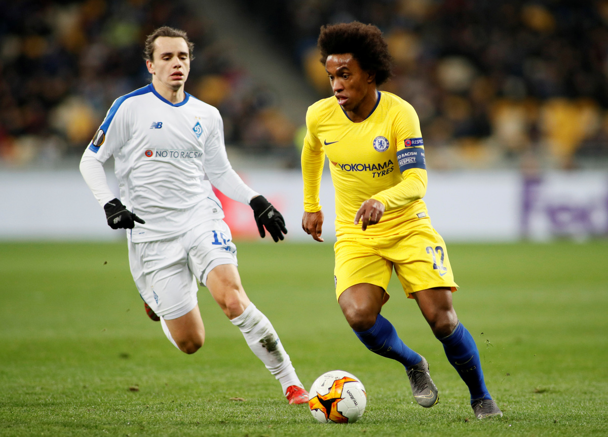 Soccer Football - Europa League - Round of 16 Second Leg - Arsenal v Stade Rennes - Emirates Stadium, London, Britain - March 14, 2019 Stade Rennes' Damien Da Silva in action with Arsenal's Alexandre Lacazette Action Images via Reuters/Tony O'BrienSoccer Football - Europa League - Round of 16 Second Leg - Arsenal v Stade Rennes - Emirates Stadium, London, Britain - March 14, 2019 Stade Rennes' Hamari Traore in action with Arsenal's Mesut Ozil Action Images via Reuters/Tony O'BrienSoccer Football - Europa League - Round of 16 Second Leg - Dynamo Kiev v Chelsea - NSC Olympiyskiy, Kiev, Ukraine - March 14, 2019 Chelsea's Olivier Giroud celebrates scoring their fourth goal to complete his hat-trick with Willian REUTERS/Valentyn OgirenkoSoccer Football - Europa League - Round of 16 Second Leg - Dynamo Kiev v Chelsea - NSC Olympiyskiy, Kiev, Ukraine - March 14, 2019 Chelsea's Callum Hudson-Odoi in action with Dynamo Kiev's Tomasz Kedziora REUTERS/Valentyn OgirenkoSoccer Football - Europa League - Round of 16 Second Leg - Dynamo Kiev v Chelsea - NSC Olympiyskiy, Kiev, Ukraine - March 14, 2019 Dynamo Kiev's Vitaliy Mykolenko in action with Chelsea's Cesar Azpilicueta REUTERS/Valentyn OgirenkoSoccer Football - Europa League - Round of 16 Second Leg - Dynamo Kiev v Chelsea - NSC Olympiyskiy, Kiev, Ukraine - March 14, 2019 Chelsea's Jorginho in action with Dynamo Kiev's Volodymyr Shepeliev REUTERS/Valentyn OgirenkoSoccer Football - Europa League - Round of 16 Second Leg - Dynamo Kiev v Chelsea - NSC Olympiyskiy, Kiev, Ukraine - March 14, 2019 Chelsea's Callum Hudson-Odoi scores their fifth goal REUTERS/Valentyn OgirenkoSoccer Football - Europa League - Round of 16 Second Leg - Dynamo Kiev v Chelsea - NSC Olympiyskiy, Kiev, Ukraine - March 14, 2019 General view of Dynamo Kiev fans holding up their scarves during the match REUTERS/Valentyn OgirenkoSoccer Football - Europa League - Round of 16 Second Leg - Dynamo Kiev v Chelsea - NSC Olympiyskiy, Kiev, Ukraine - March 14, 2019 Dynamo Kiev's Tomasz Kedziora and Serhiy Sydorchuk in action with Chelsea's Ruben Loftus-Cheek REUTERS/Valentyn OgirenkoSoccer Football - Europa League - Round of 16 Second Leg - Dynamo Kiev v Chelsea - NSC Olympiyskiy, Kiev, Ukraine - March 14, 2019 Chelsea's Callum Hudson-Odoi in action with Dynamo Kiev's Mykyta Burda and Tomasz Kedziora REUTERS/Valentyn OgirenkoSoccer Football - Europa League - Round of 16 Second Leg - Dynamo Kiev v Chelsea - NSC Olympiyskiy, Kiev, Ukraine - March 14, 2019 Dynamo Kiev's Serhiy Sydorchuk shoots against the post as Chelsea's Kepa Arrizabalaga attempts to save REUTERS/Valentyn OgirenkoSoccer Football - Europa League - Round of 16 Second Leg - Dynamo Kiev v Chelsea - NSC Olympiyskiy, Kiev, Ukraine - March 14, 2019 Dynamo Kiev's Tomasz Kedziora in action with Chelsea's Marcos Alonso REUTERS/Valentyn OgirenkoSoccer Football - Europa League - Round of 16 Second Leg - Dynamo Kiev v Chelsea - NSC Olympiyskiy, Kiev, Ukraine - March 14, 2019 Chelsea's Willian in action with Dynamo Kiev's Mykola Shaparenko REUTERS/Valentyn OgirenkoSoccer Football - Europa League - Round of 16 Second Leg - Dynamo Kiev v Chelsea - NSC Olympiyskiy, Kiev, Ukraine - March 14, 2019 Chelsea's N'Golo Kante in action with Dynamo Kiev's Serhiy Sydorchuk and Vitaliy Mykolenko REUTERS/Valentyn Ogirenko