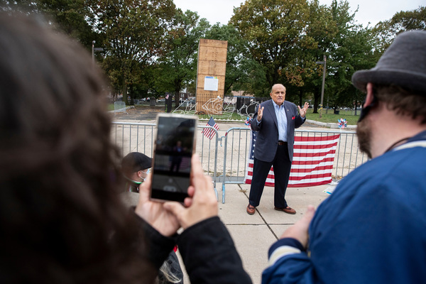 Midday, Giuliani made an impromptu appearance at the boarded-up Christopher Columbus statue at Marconi Plaza in South Philadelphia, railing against Democratic stances on abortion rights, taxes and the economy. City officials have proposed moving the statue, which has become a magnet for protests and counterprotests during the national reckoning over racism and the commemoration of divisive historical figures. The move is tied up in court.