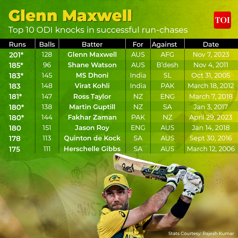 Indeed, Maxwell’s epic knock ranks right up there with the best-on ‘X’ Ravi Shastri compared it to Kapil Dev’s magical 175 -which won India the match after they had been reduced to 17 for five at Tunbridge Wells -in the 1983 World Cup against Zimbabwe.