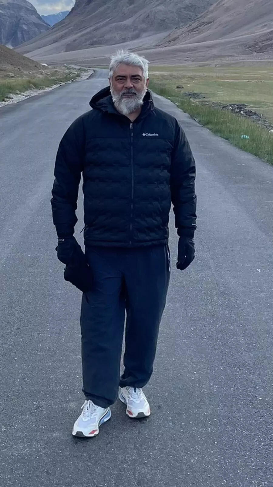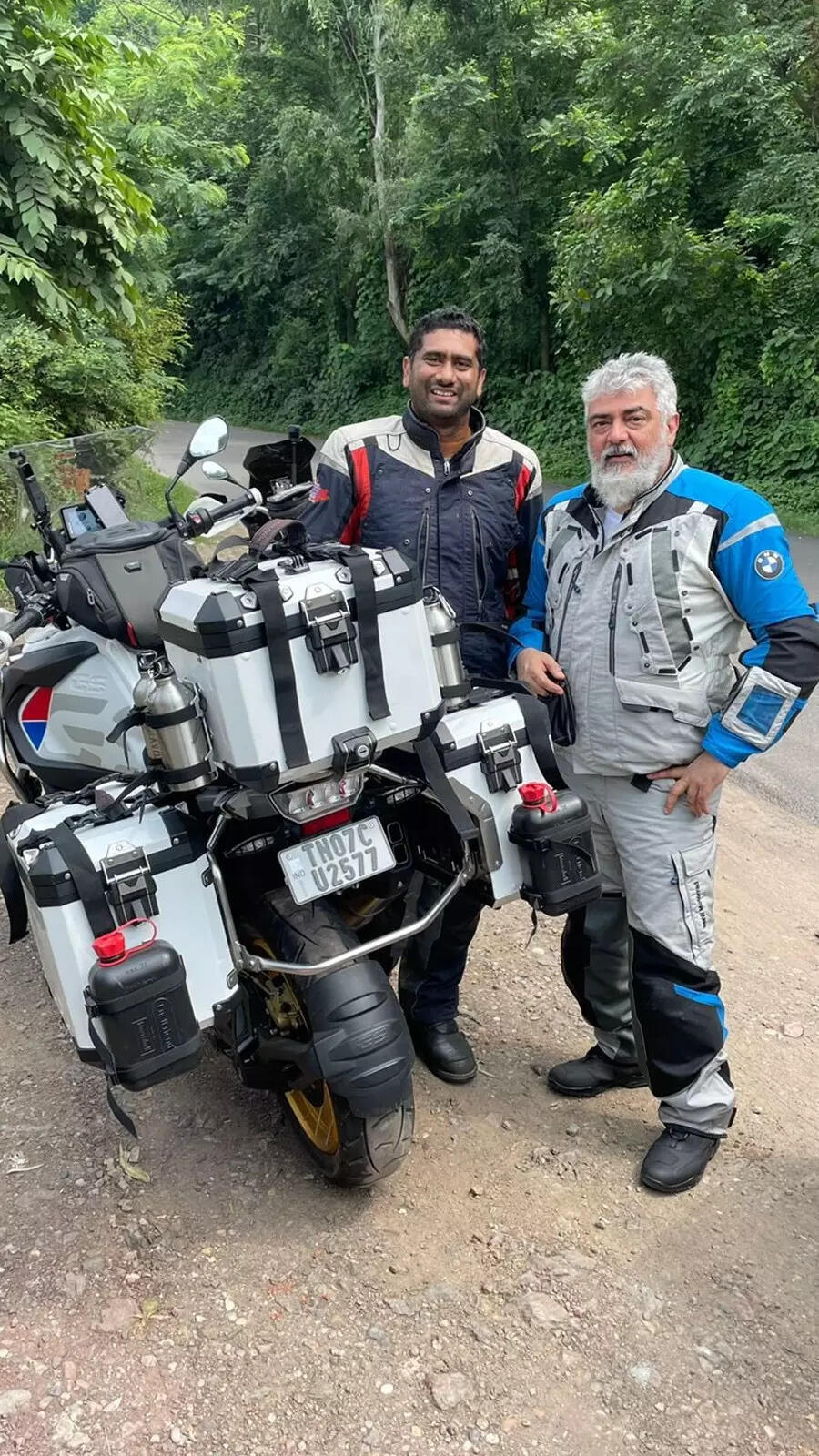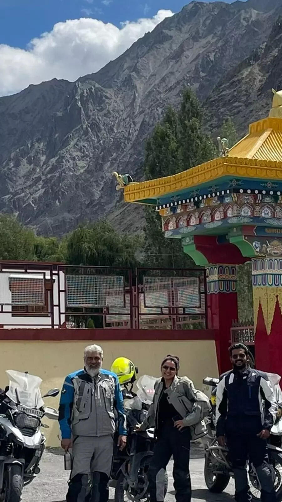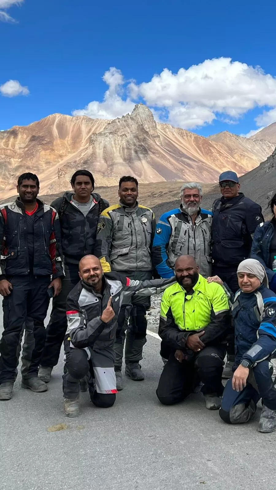 Ajith poses for a perfect click with friends as they find a beautiful backdrop.