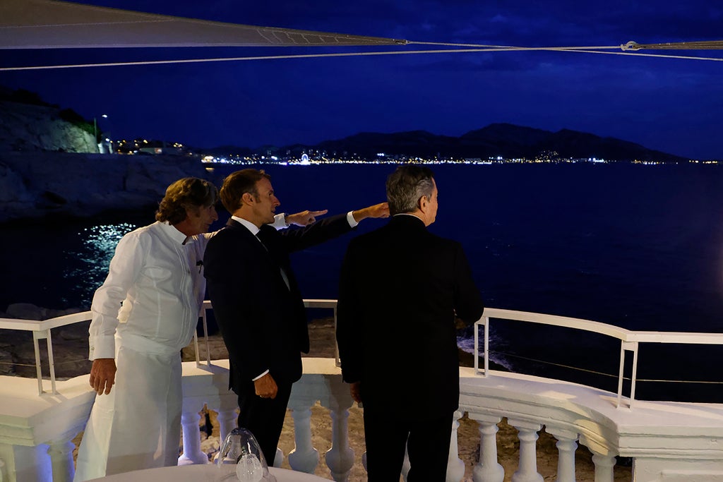 On Friday morning, Macron and some other conference participants, including European Council President Charles Michel took a boat to Calanques National Park, a marine reserve near Marseille known for its azure blue waters topped by high white cliffs.